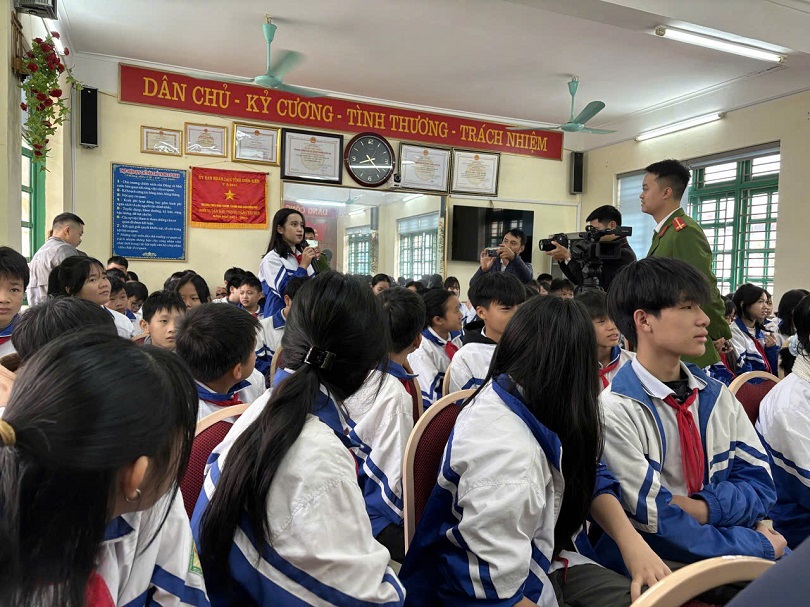 Phối hợp tổ chức tuyên truyền về việc cấm mua bán, tàng trữ, vận chuyển, sử dụng pháo nổ tại trường THCS Nam Thanh