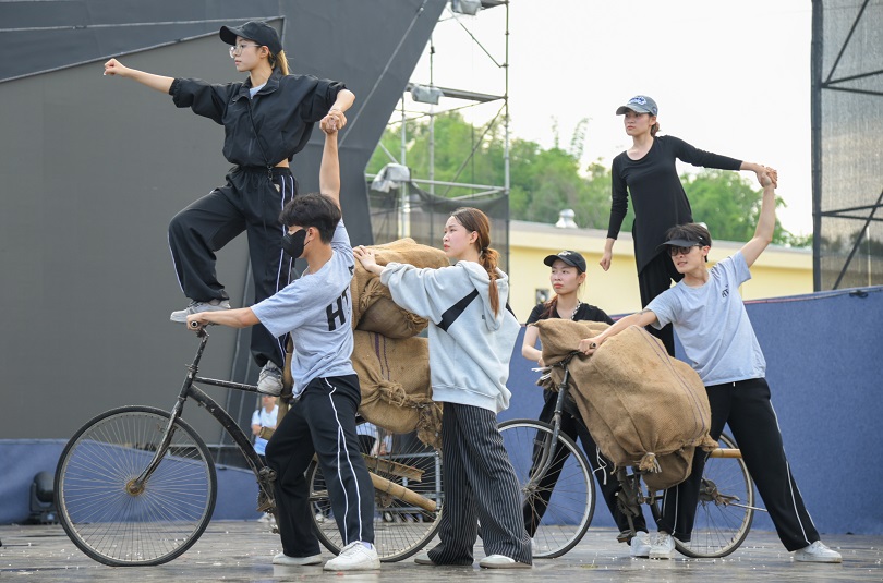 Cùng với việc dựng sân khấu, không khí luyện tập của các diễn viên, nghệ sĩ diễn ra hết sức sôi nổi và khẩn trương. Chương trình quy tụ lực lượng hùng hậu gồm 500 nghệ sĩ, diễn viên, bao gồm cả lực lượng chuyên nghiệp và diễn viên không chuyên được huy động từ các đơn vị, trường học trên địa bàn. Tất cả đang nỗ lực khắc phục khó khăn về thời tiết, tập trung luyện tập để đảm bảo chất lượng nghệ thuật cao nhất cho đêm diễn.